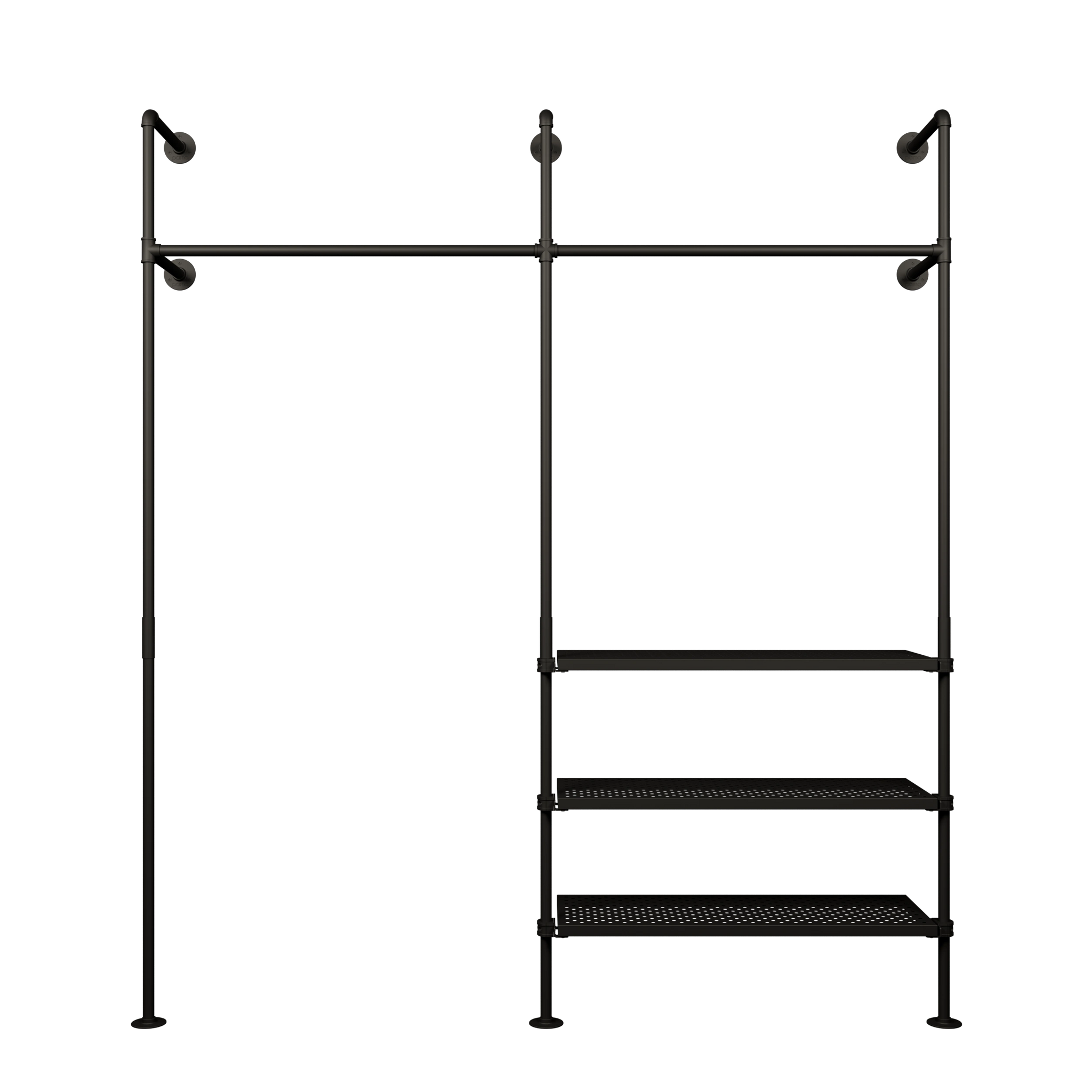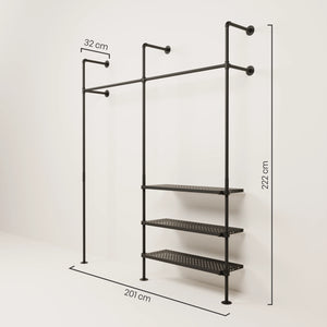 Vår garderob med skoförvaring förvandlar varje entréområde till ett verkligt utrymmesunder. Den förenar en praktisk klädhängare med en extra hylla för skor och förvarar snabbt och ordnat alla dina klädesplagg. KIM 2 METAL 3 kan dock inte bara användas som garderob med skoförvaring, utan erbjuder dig också praktisk förvaring för dina kläder i sovrummet eller omklädningsrummet.